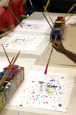 I read this adorable story with my Kg.-2nd graders today. Then, we did dot painting with our fingers. I like to do this with the younger students because they like to get paint on themselves anyway but I show them that they can have fun, create art, and get messy at the same time :) Believe it or not, when the kiddos are 'allowed' to stick their fingers in the paint, they are much cleaner and controlled when I tell them not to stick their fingers in the paint...go figure. Here are some of our paintings:
